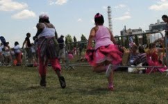 A selection of lovely outfits, althought how these ladies ran in those wigs I really don't know, it was the hottest day of the year, and the race did not start until 11am, so it was blazing by the time we got going, good on you ladies.